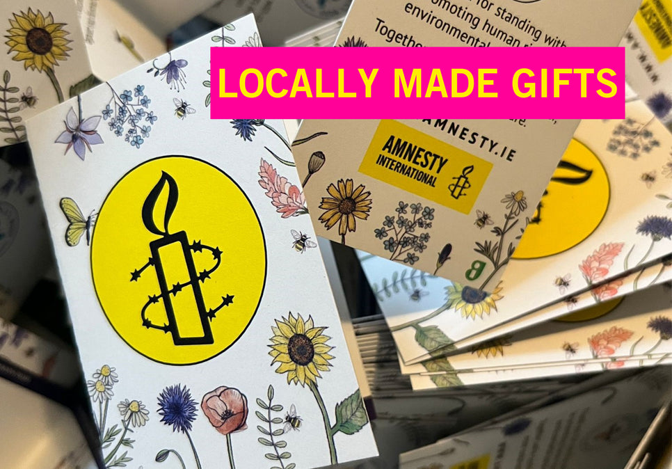 For the last 4 years, Amnesty have been developing relationships with local makers to build a stock of hand made, ethical and sustainable products to sell in our shop. If you are a local maker who would be interested in selling your products in our shop or would like to collaborate on an Amnesty branded product please do get in touch at shop@amnesty.ie.